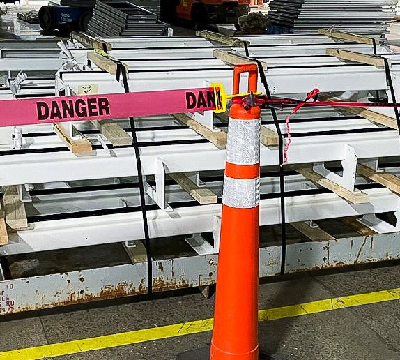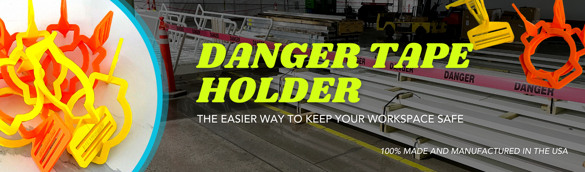 The creators of the Danger Tape Holder worked at an auto manufacturing plant. The executives would ask subcontractors to replace danger tape during tours because it looked bad. So, the DTH 1 was created to hold the tape in a flat position, making it easy to read and understand. This also solved the problem of having to constantly retie the tape when traffic passed through.
